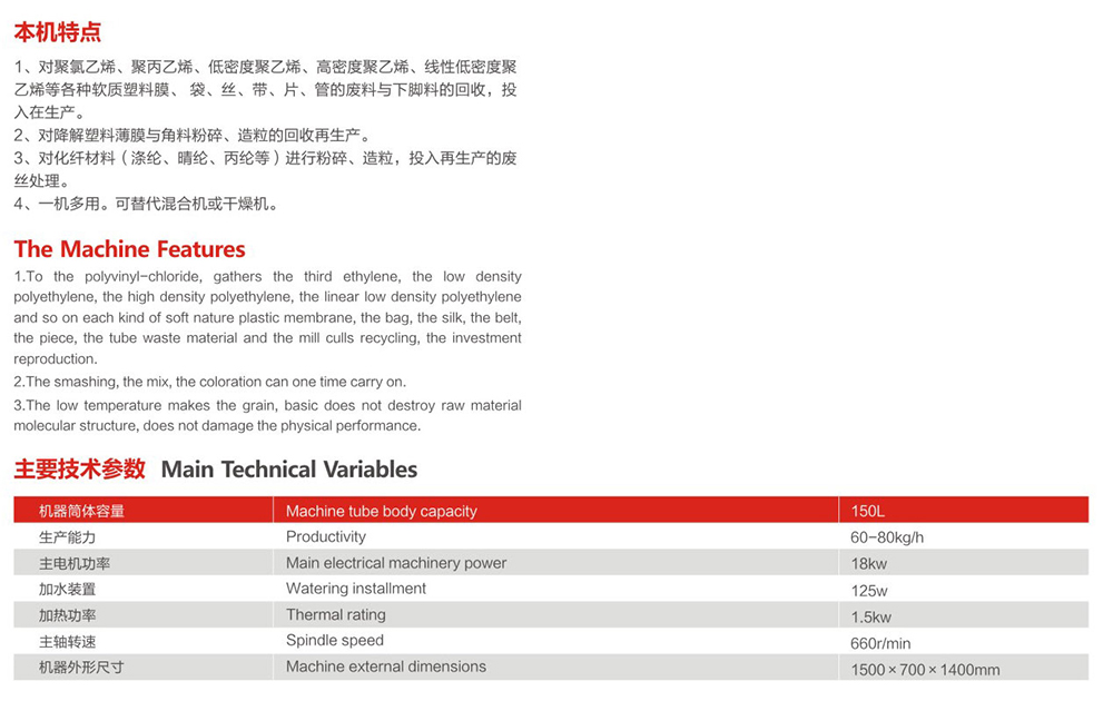 DC-150 plastic crushing and mixing granulator